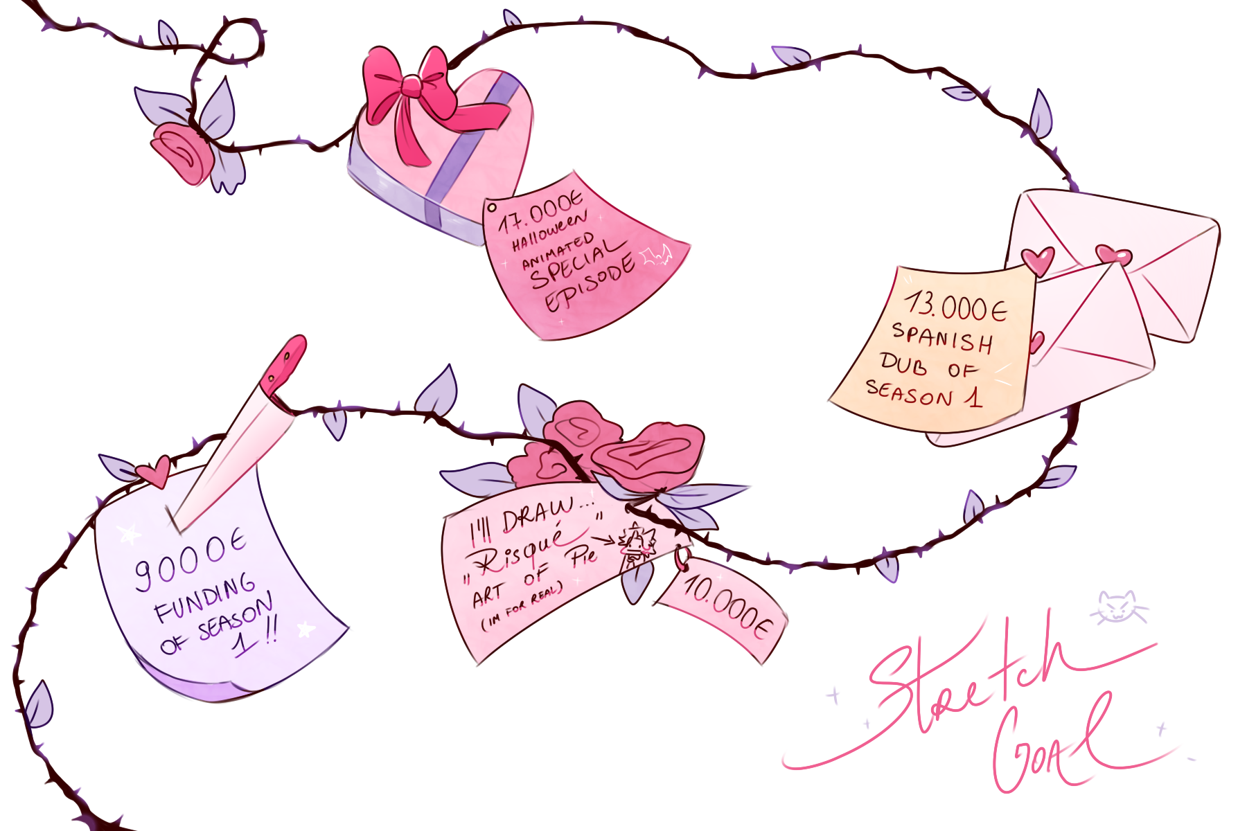 10.000€ Stretch goal, is me getting to draw multiple “risqué” art of my character Pie, if you know, you know- I get a feeling that there’s… definitely ugh someone who wants to see it…right? RIGHT?????