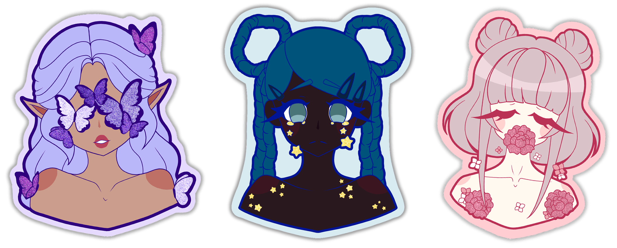 Stickers will be approximately 3 inches tall with spot glitter!