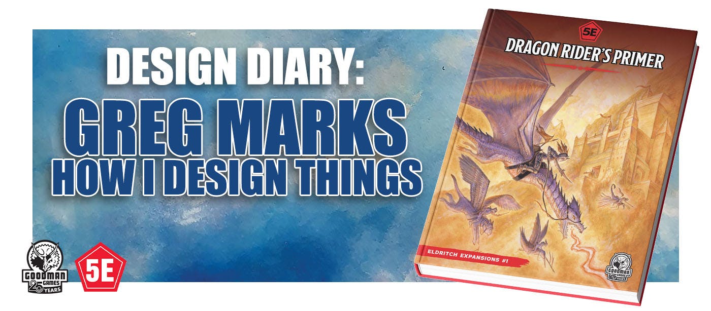 When I start a project, I have questions about timelines, word counts, and templates, but most importantly, “What’s the goal or vision for this project?” The folks at Goodman Games had some huge ideas for an aerial-based campaign that really struck a chord with me as being unique. There are many underground or underwater campaigns, and even some in space! But there are not many in the air, especially not where every character gets a special mount! I immediately realized that there was a lot that could be done, both narratively and with design, and I was very excited to join the author team.