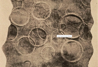 And how about branching tentacles? Those seem cool, right? These were a rare mutation found on an octopus, and I knew we needed our kraken to sport these branching grasping arms. It’s a common trope to have your cult have a hidden tattoo that signifies its membership. Well, we wanted that clue to the Cult of the Beast, but we wanted to do one step better. So instead of a tattoo, our higher-ranking cult members (each named after a part of a cephalopod, by the way) have a scar at the base of their neck created with a giant cephalopod sucker. Here is the inspiration, as seen on a real-world fossil of whale skin. We hope you enjoyed learning about where we find inspirations when designing amazing tabletop RPG products. Leave us a comment about a unique thing that inspired you and your game.