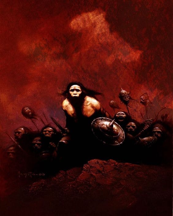 Chief among the inspirations was of course, the master of the imagination, Frank Frazetta. And while his Mars paintings embodied raw dynamism and power, we went further afield, to ensure that the Purple Planet would be inspired by – rather than derivative of – John Carter’s adventures. The first inklings of what would become the kith were drawn from a mix of Frazetta’s Orcs and Neanderthals. The kith emerged from an umber haze somewhere between the two – with violent passions, mighty thews, and a native hatred that rendered them both deadly and tragic.