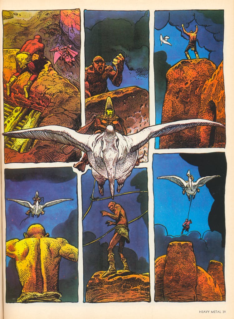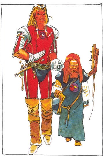 The third visual inspiration, as genius as both Frazetta and Grell, was Mœbius and his Arzach. Mœbius’s barren worlds, with their alien vistas, ancient monuments, and deadly inhabitants, offer ample inspiration for those trying to capture the feel of the Purple Planet. And from there is a just a short leap to Mœbius’ Dune sketches, studies, and storyboards.