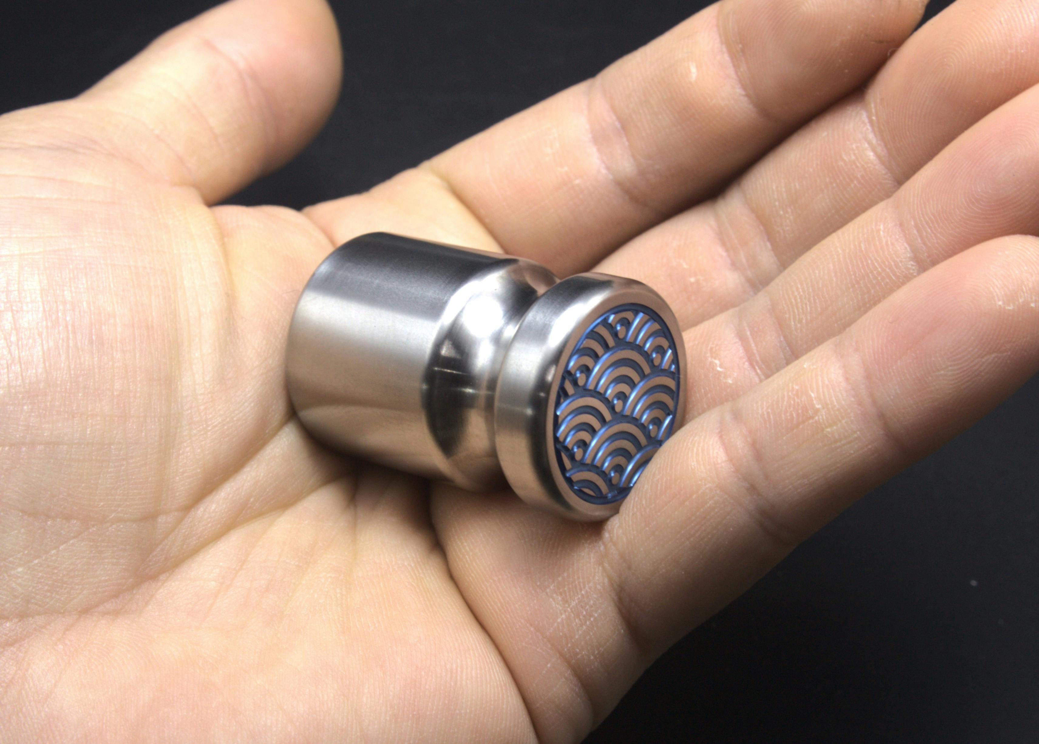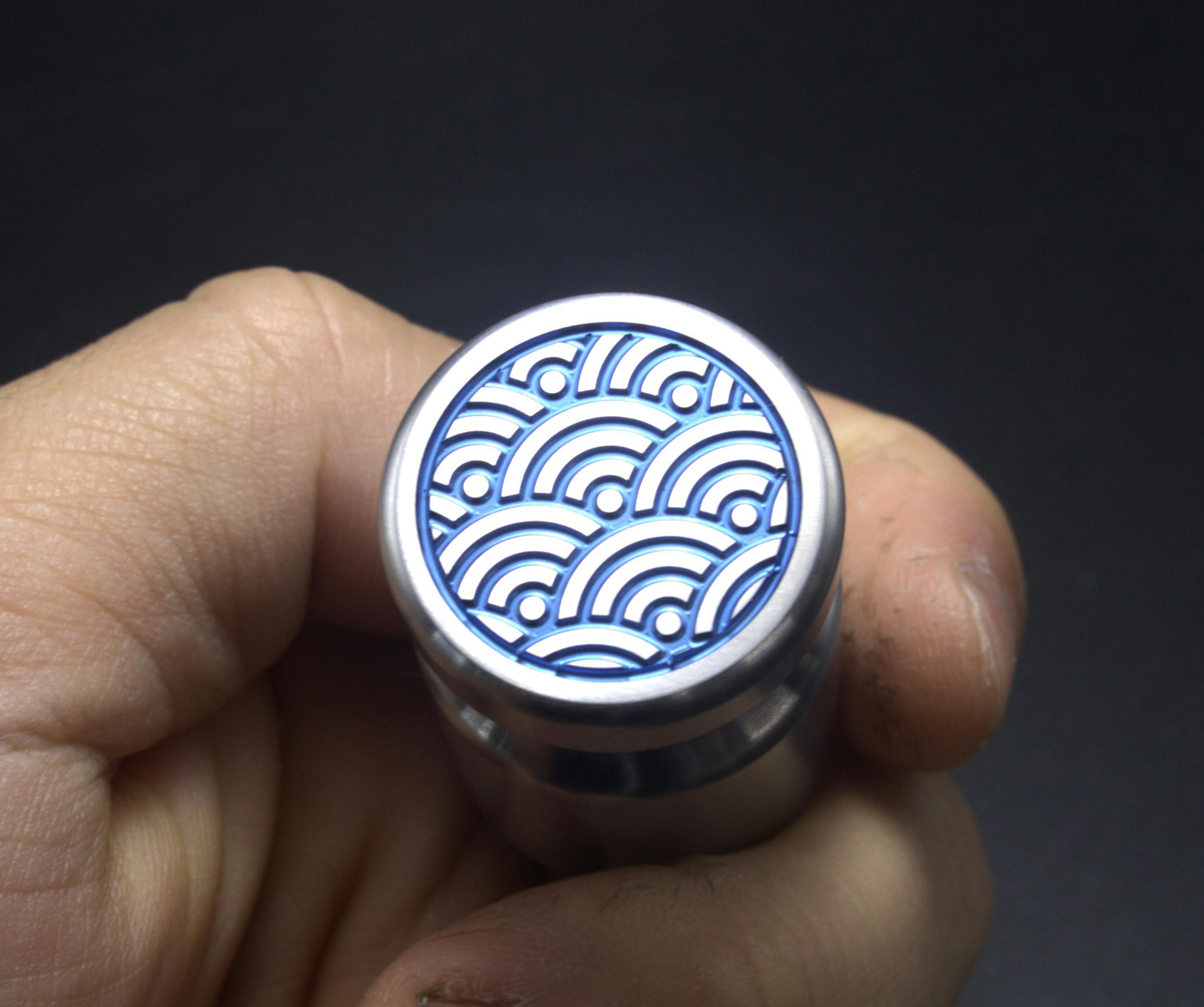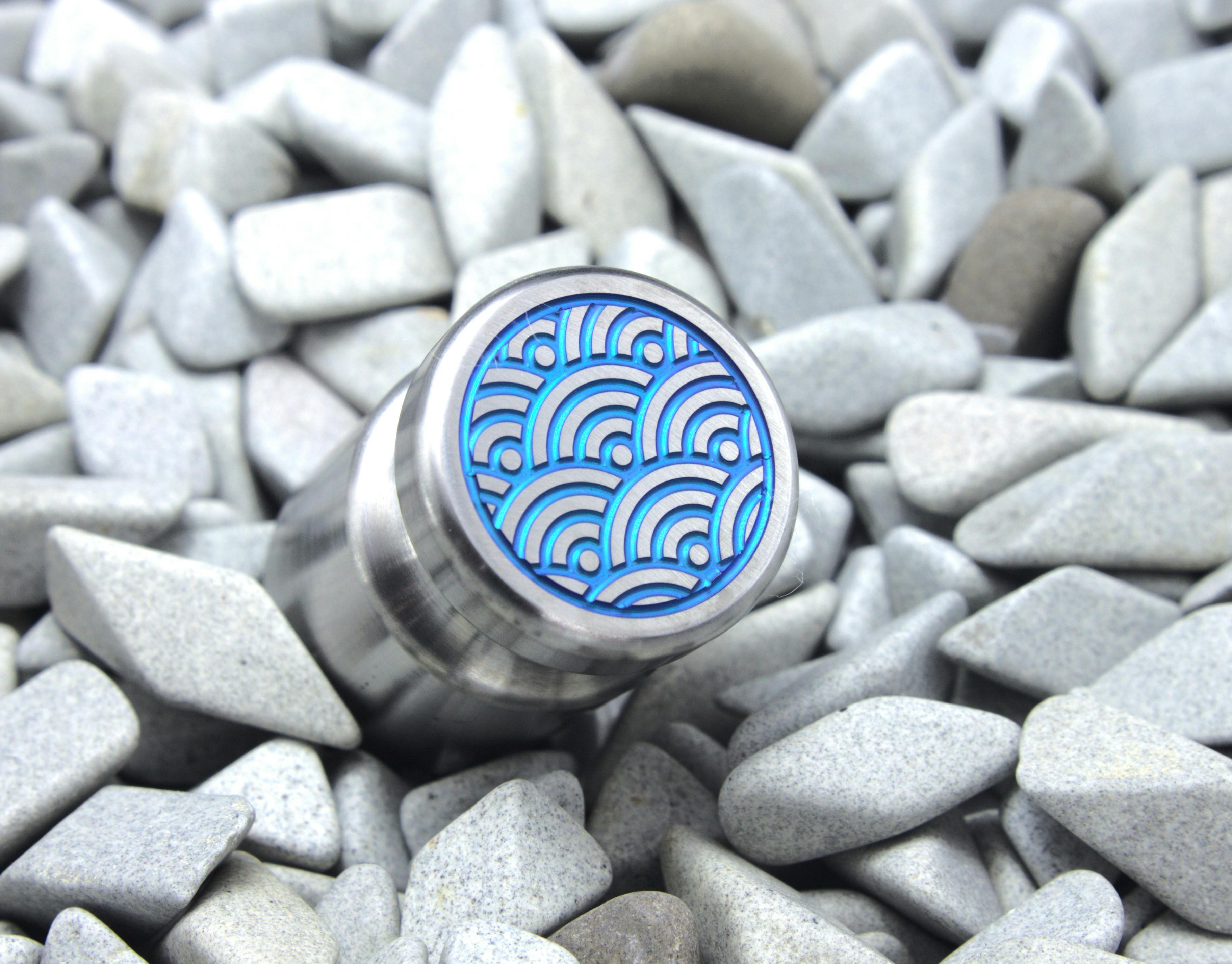 CNC machined 1" diameter grade 5 titanium magnets engraved with Seigaiha, the iconic Japanese blue sea and waves iconic. Anodized in 4 different colors and hand sanded to a satin finish.