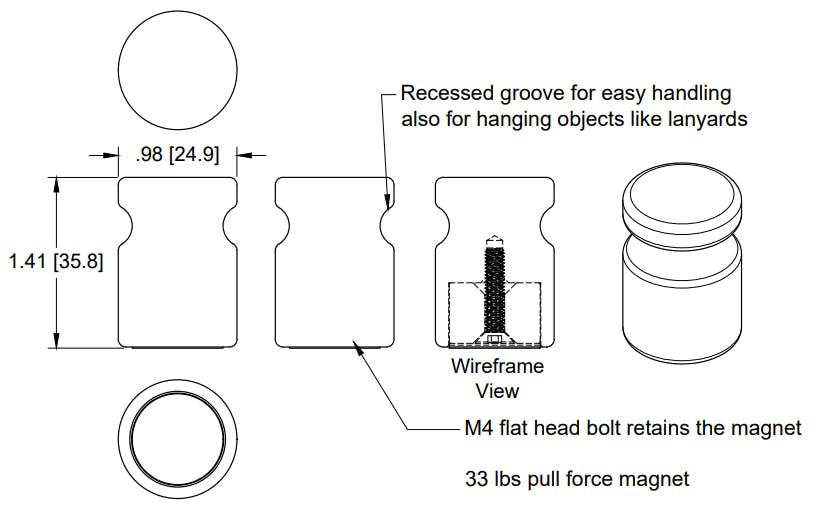 Magnet is bolted in from the bottom making it easy to swap out in the event a new magnet is needed, or if you want to put something in besides a magnet.