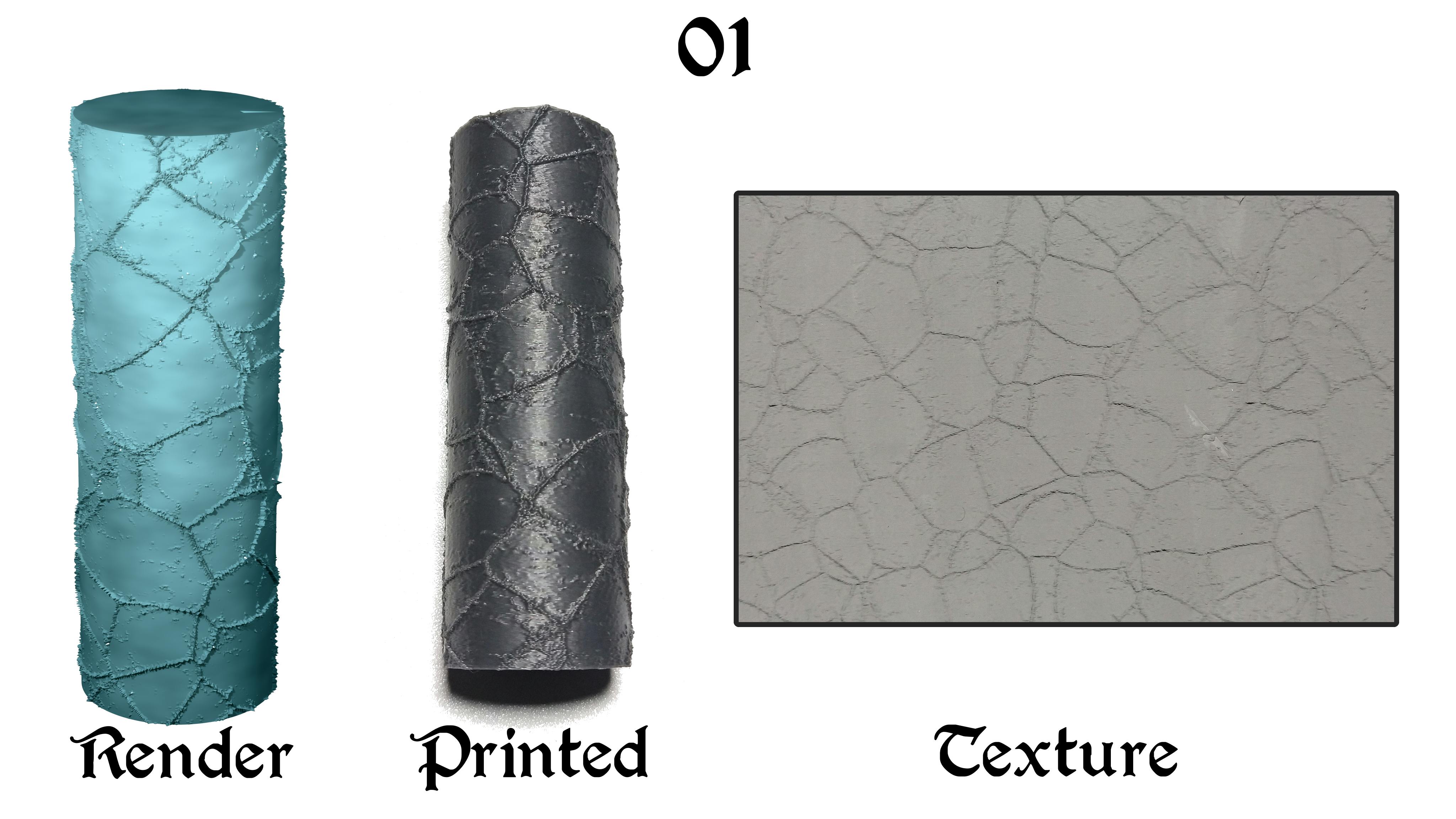 Bring your tabletop gaming, war games, and crafting projects to life with our 3D printed texture rollers. Each of them feature detailed designs that you can use to imprint textures on clay, foam, putty, and many other materials, transforming them into stunning landscapes, walls, roads, and more.