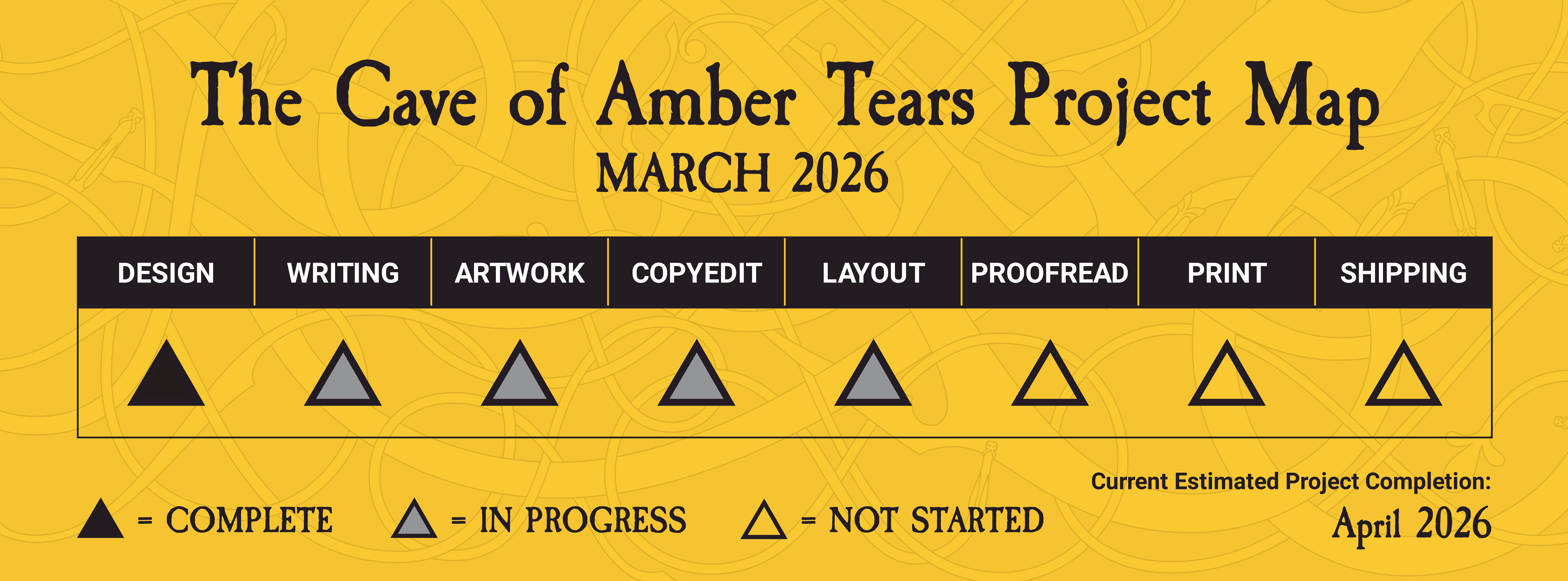 Things are going smoothly with editing, revisions, and art. There was a bit of a delay with cartography, so it's unclear if the PDF of the final product will be done in April. If there's a significant delay, you'll know soon!