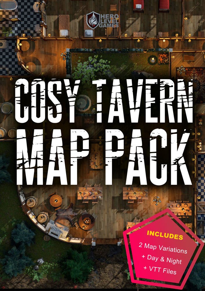 We see you, eager folks, and as a thank you for backing early, we are including a free Cosy Tavern Map. Perfect for dropping your newly generated menu straight into play.