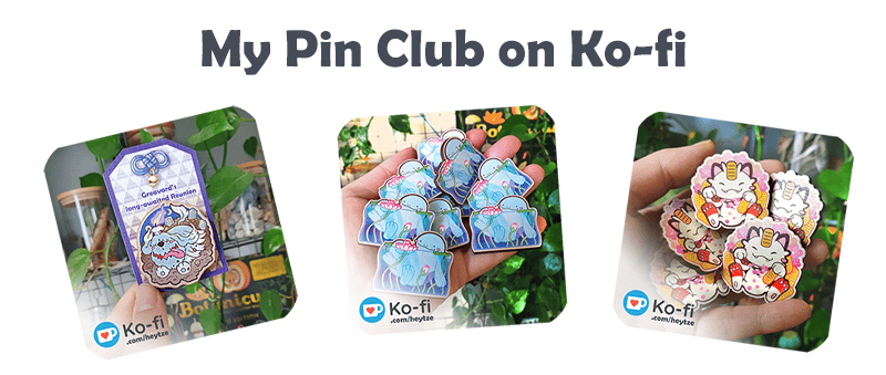 My Sticker Club was first launched in 2023, followed by the Pin Club in 2025. Both are still running successfully on my Ko-fi. I'm used to producing many new designs on a monthly basis and am familiar with the process from designing the product to shipping the physical item to my Club members.