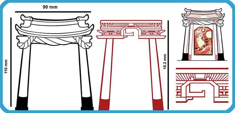 Techincal drawing of the shrine. The final version has a thicker, sturdier hook.