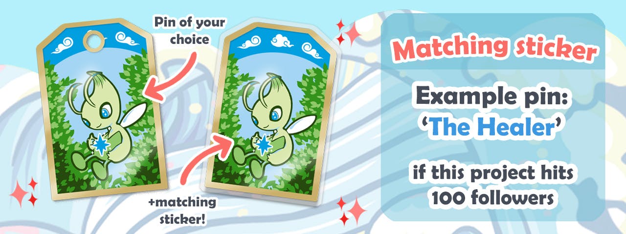 If this project reaches 100 followers backers will receive a matching sticker with their chosen pin!