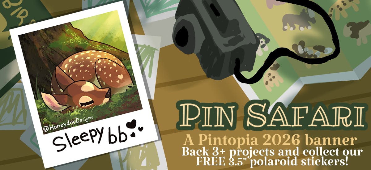Pintopia has a new feature called Banners, where a group of creators come together under a banner to collaborate together (and offer more free stuff). I've joined Pin Safari, an animal themed banner! Me and 22 other creators have teamed up under the Pin Safari banner! Through it, if you back three Pin Safari campaigns, you will receive a free Polaroid inspired sticker from each campaign! For more information, click on either picture to be taken to the Pin Safari webpage. ✨