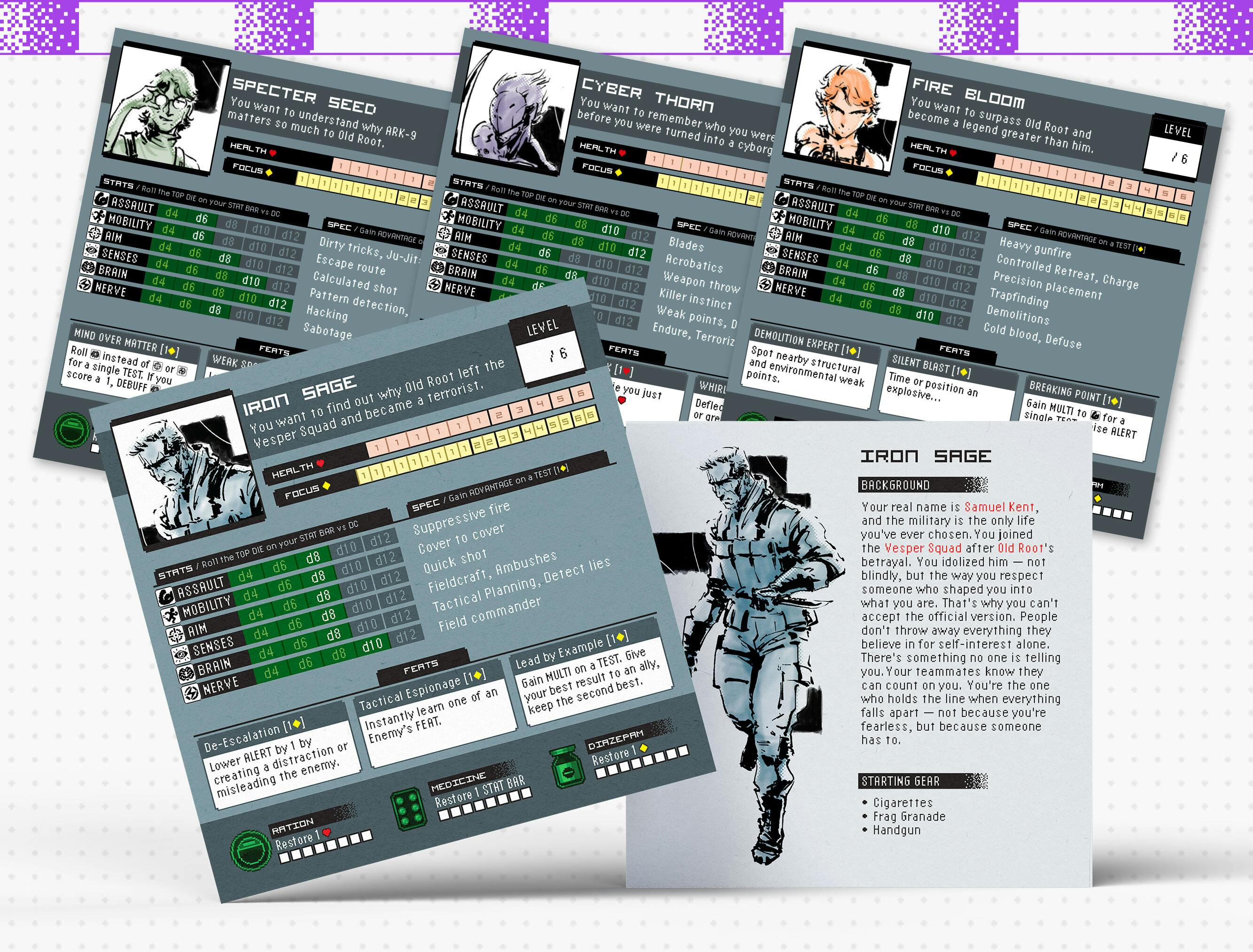 Choose one of four pre-generated characters; the unflinching leader Silent Sage, the master-blaster Fire Bloom, the techno-ninja Cyber Thorn, or the legendary hacker Specter Seed… And jump straight into the action.