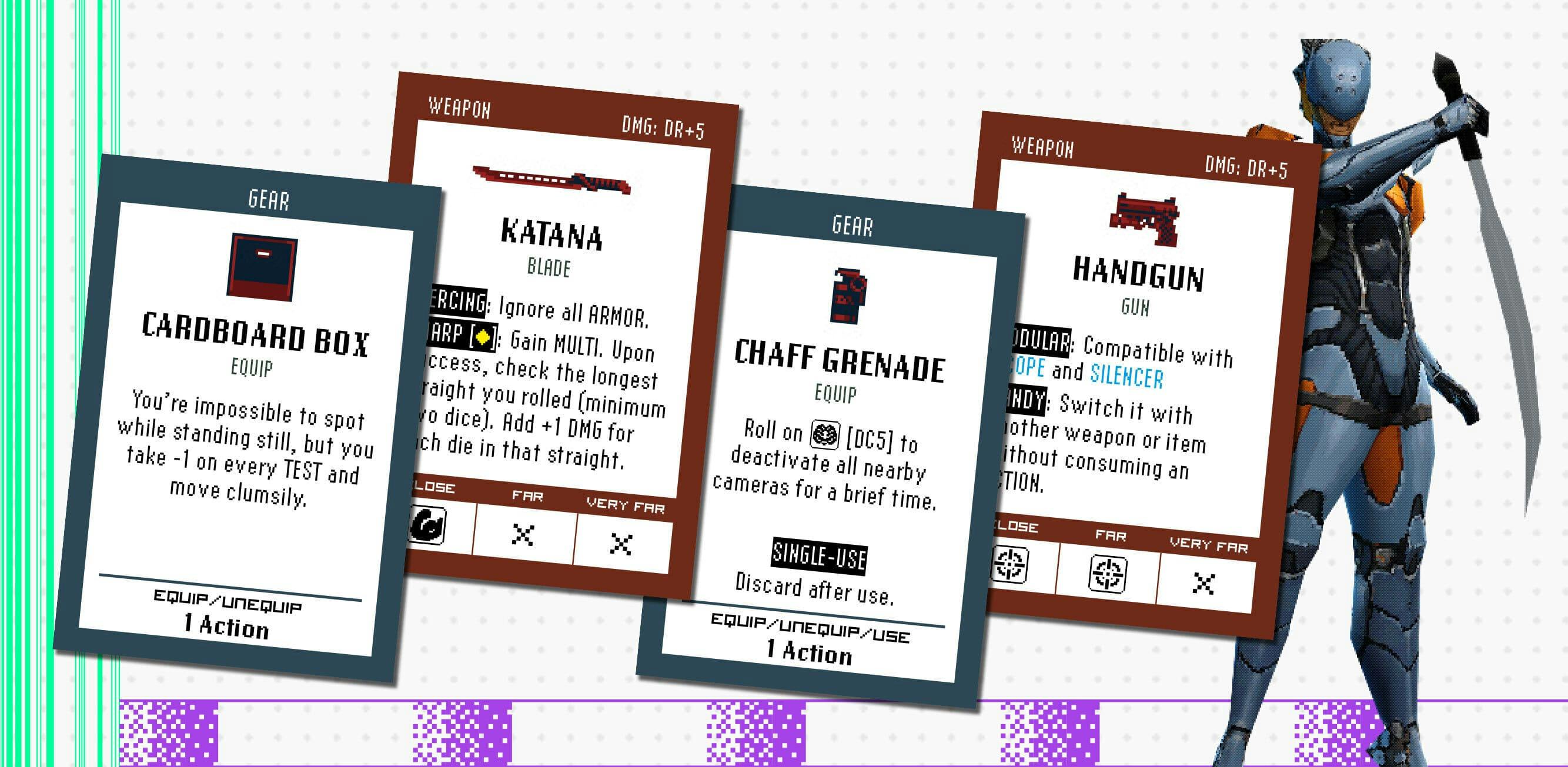 Your tools matter just as much as your decisions. Solid State Machine is built around a gadget-first philosophy: decoys, disguises, stun devices, explosives, and the most technologically advanced device of all: a cardboard box. Gear opens entirely new approaches: a locked door isn’t an obstacle if you can bypass it. A guard isn’t a threat if you can misdirect them.