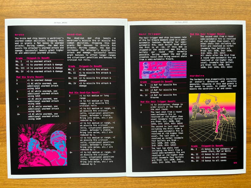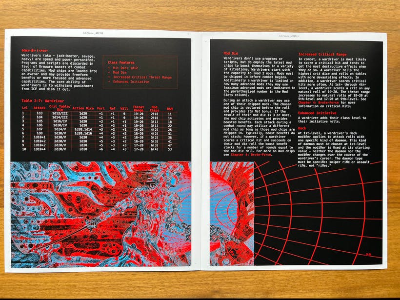 Big thing this month is timelines. The Netcrawl RPG rulebook is with the printers. I am still winding my way through pre-press steps. I did some refinements and opted for some physical proofs. Check these out: