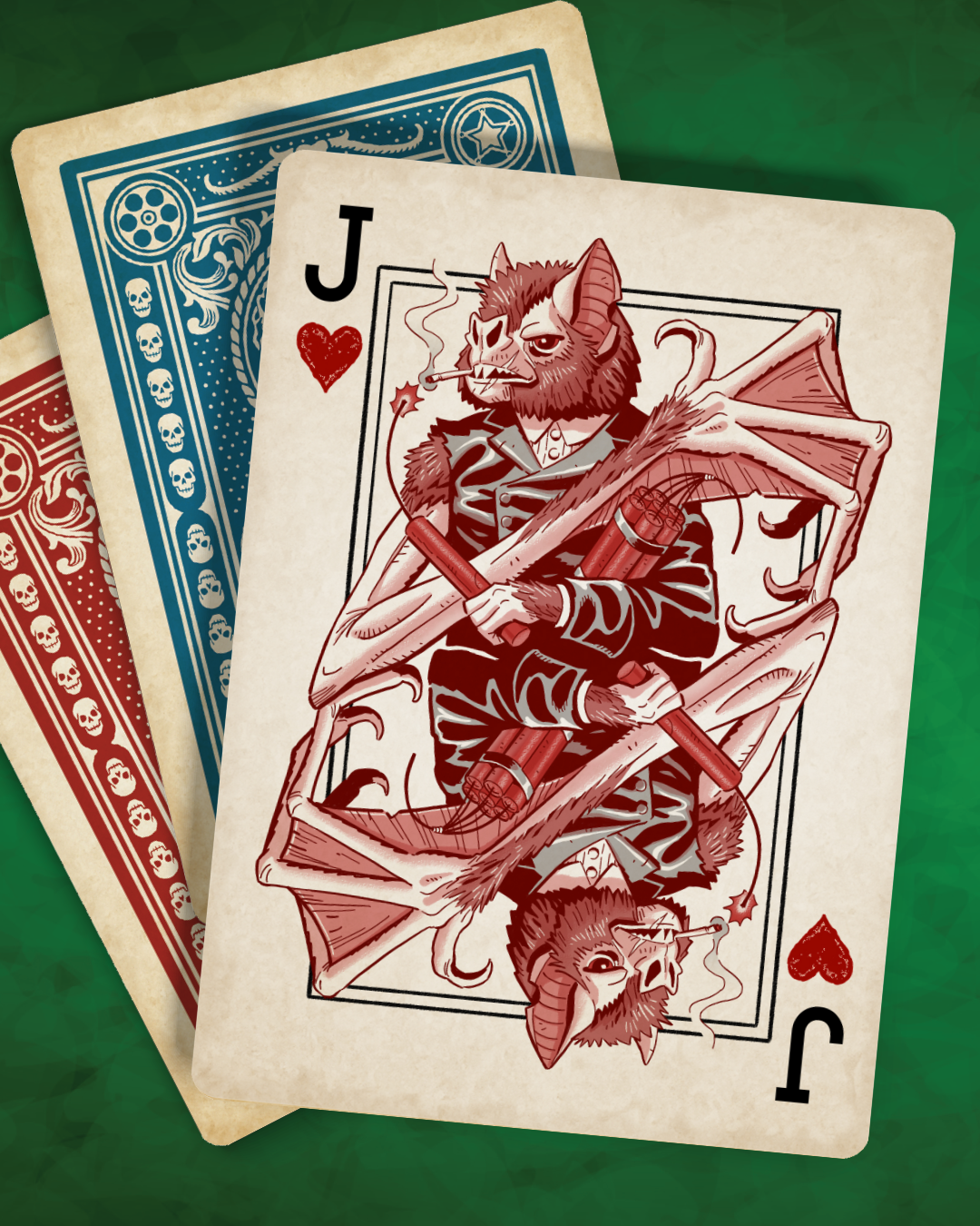 I have got a very special update for you today. George has offered to take us "behind the scenes" of how he creates Huckleberry's art! He's walking us step-by-step through the process he used to create our Consumptive Sanitarium two-page spread. But first, let's reveal the playing card you voted for.