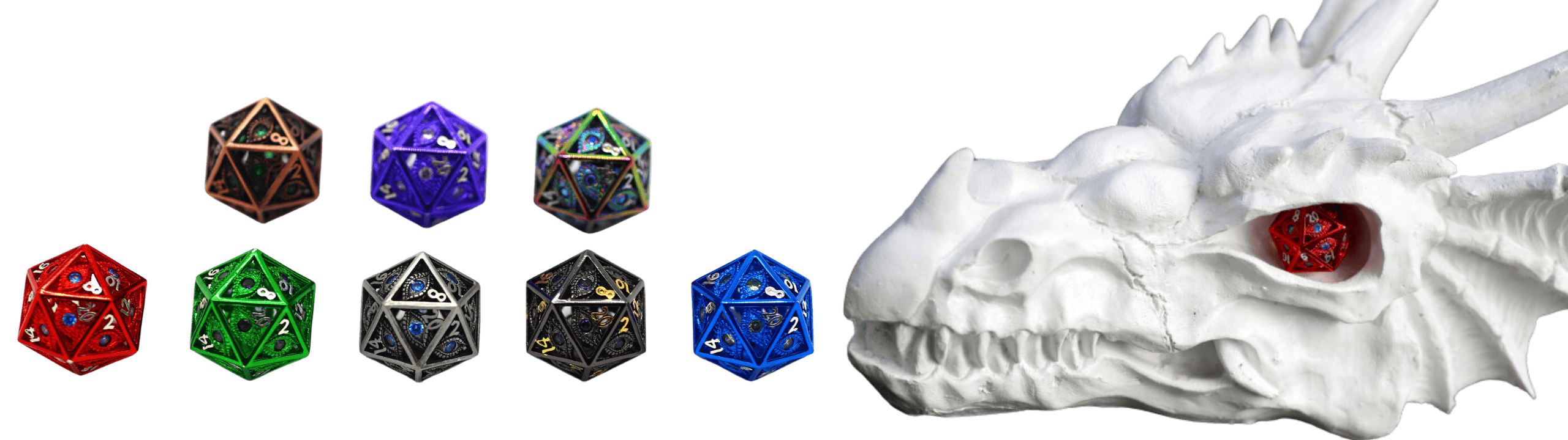 You will receive one full set of our newly revamped amazing Dragon Eye hollow metal dice. Backerkit $80 - MSRP $99. Color to be chosen and shipping calculated in pledge manager.