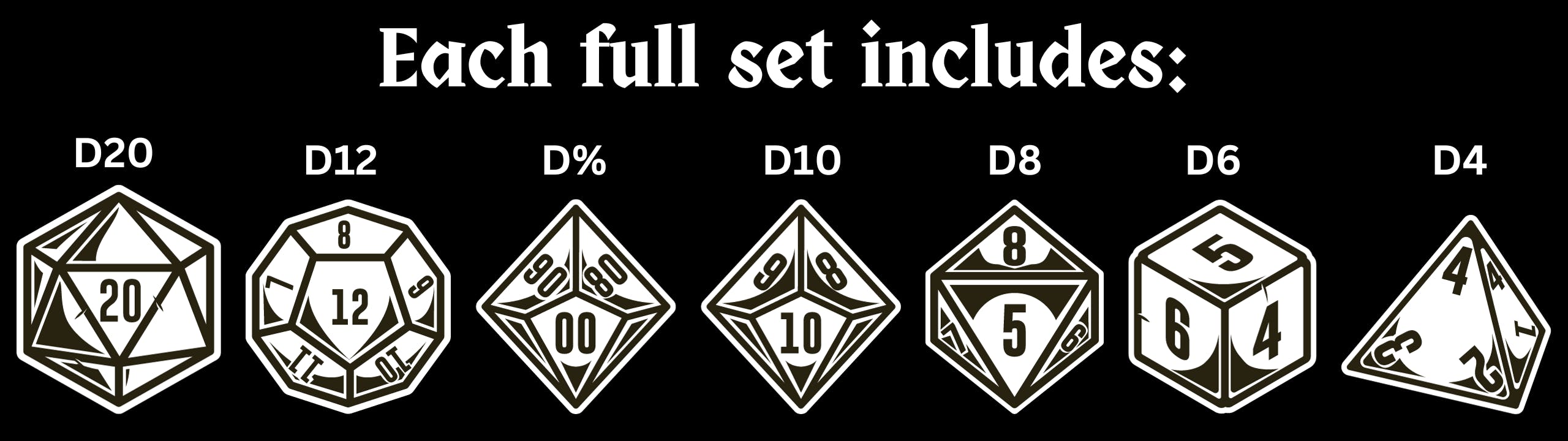 You will receive one full set of hollow metal Dragon's Eye dice and 1 full set of Always Watching liquid core sharp edge resin dice. Backerkit $115 - MSRP $159. Color to be chosen and shipping calculated in pledge manager.