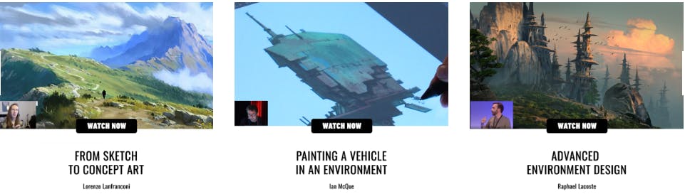 Access Master Classes from Ian McQue, Raphael Lacoste, Sparth, Feng Zu, Goro Fujita, John Howe, Shaddy Safady, Craig Mullins, and Ryan Church, to name a few names of the artists who've been part of past editions.