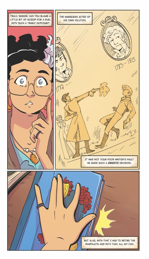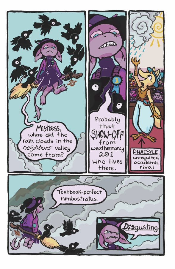 Perfect Crime Party is 6.625 inches × 10.25 inches, and full color throughout! It's roughly 300 pages and containing light-heart tales of criminal activity. Whether it's a club-style murder mystery, anxious teens hijinx, or acts of protest, we got it in the newest Iron Circus anthology!