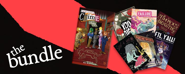 For $200, you can get all of Iron Circus's previous general anthologies with your copy of Perfect Crime Party! This pack includes Sleep of Reason, New World, Timrous Beastie, FTY Ya'll, Failure to Launch, and the Eisner-award-winning You Died!