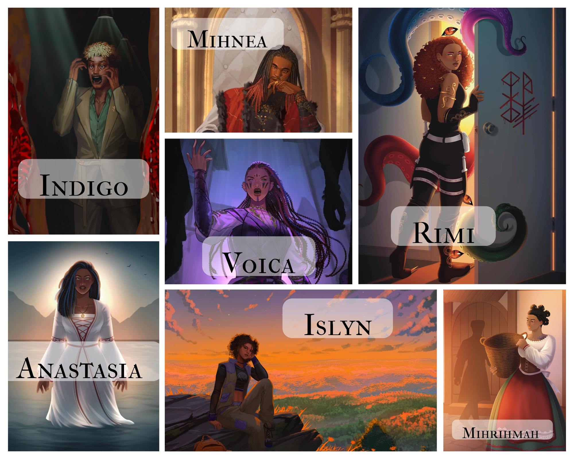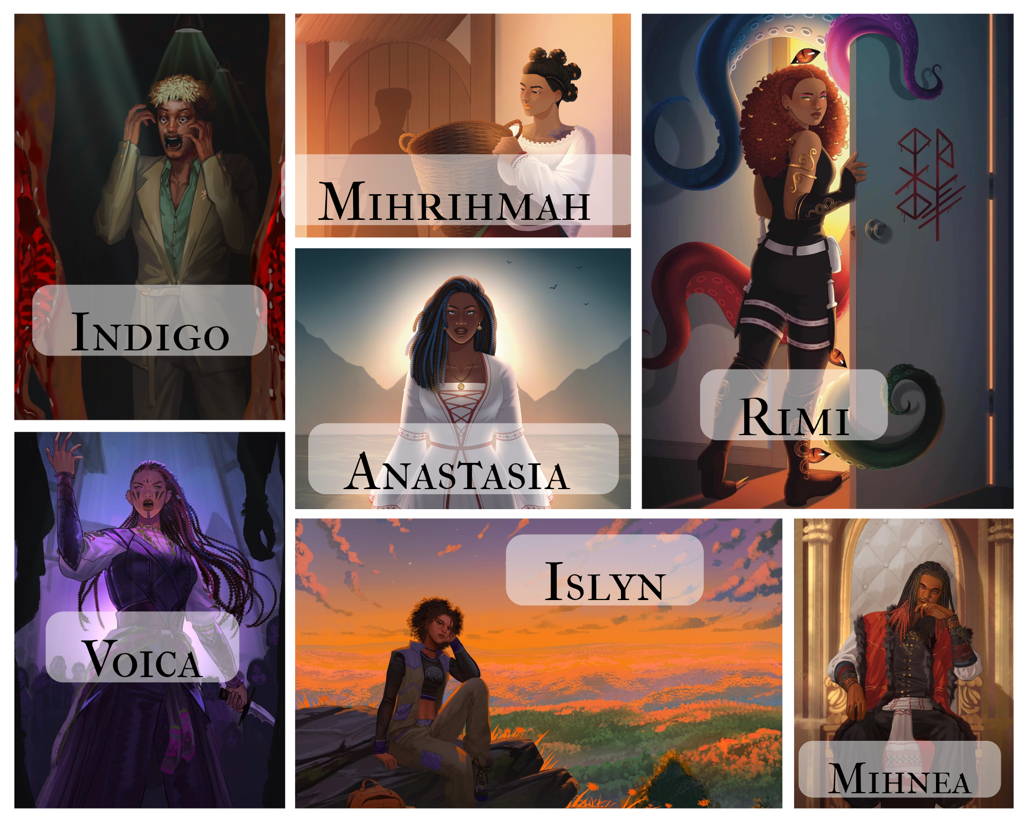 If you follow me on Instagram, you may have already seen a sneak peek of Rimi’s art, but I wanted to share the concept art for both her and Indigo. We didn’t hit the $1500 threshold for me to purchase character art prints, but their pictures will be included in the book. That said, if y’all end up adding $467 in add-ons as a collective, I can definitely put that option back on the table.