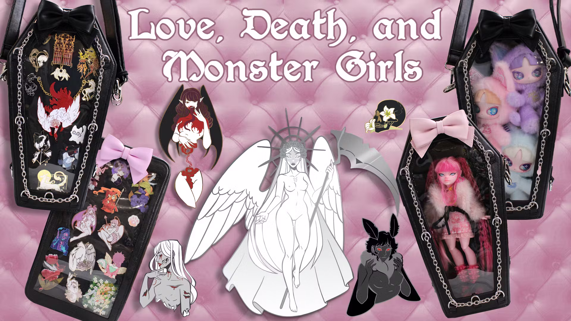 Love, Death, and Monster Girls - A continuation of my monster girl enamel pin collection as well as launching my very first ita bag !