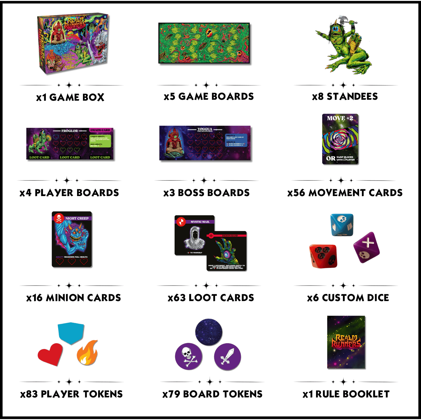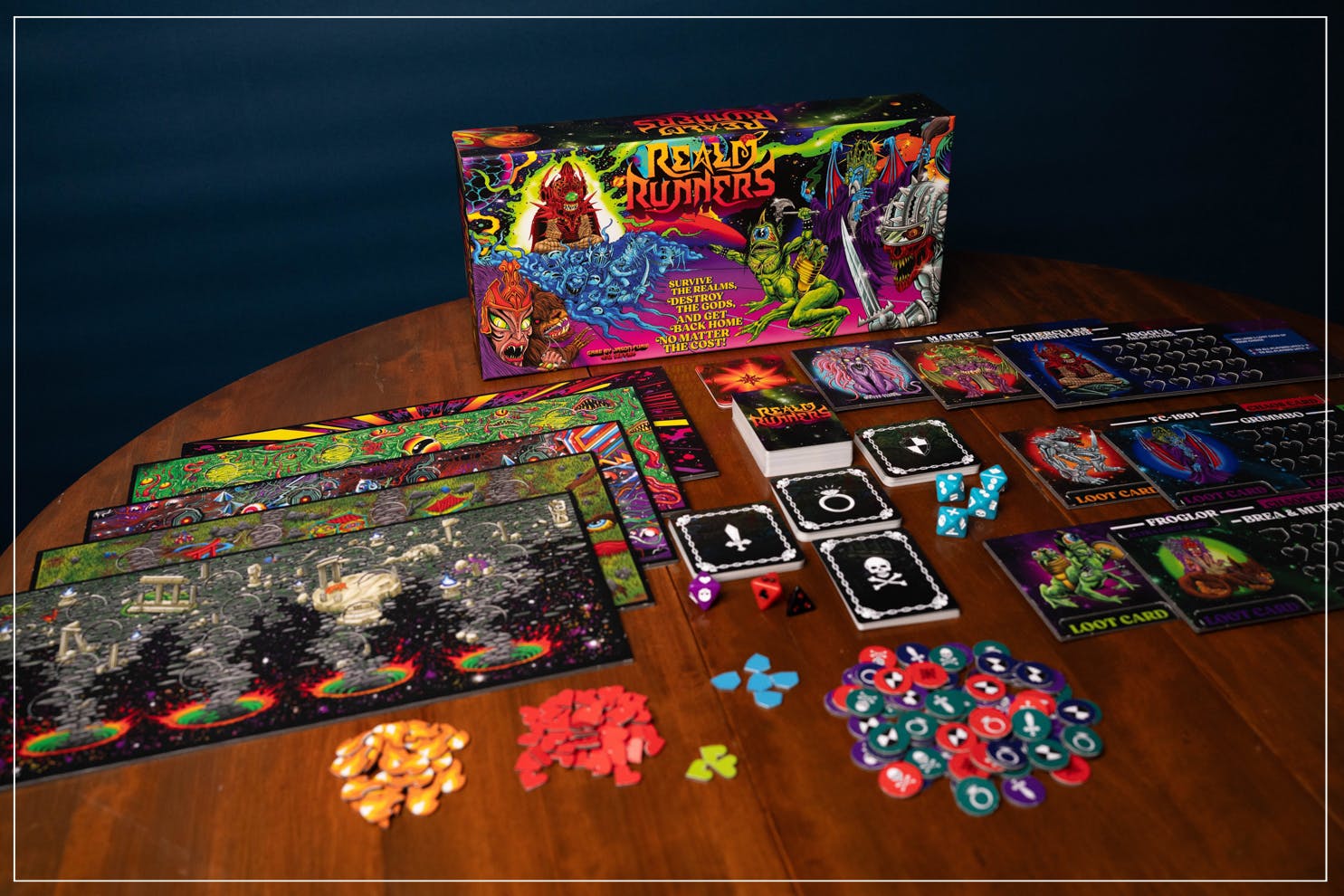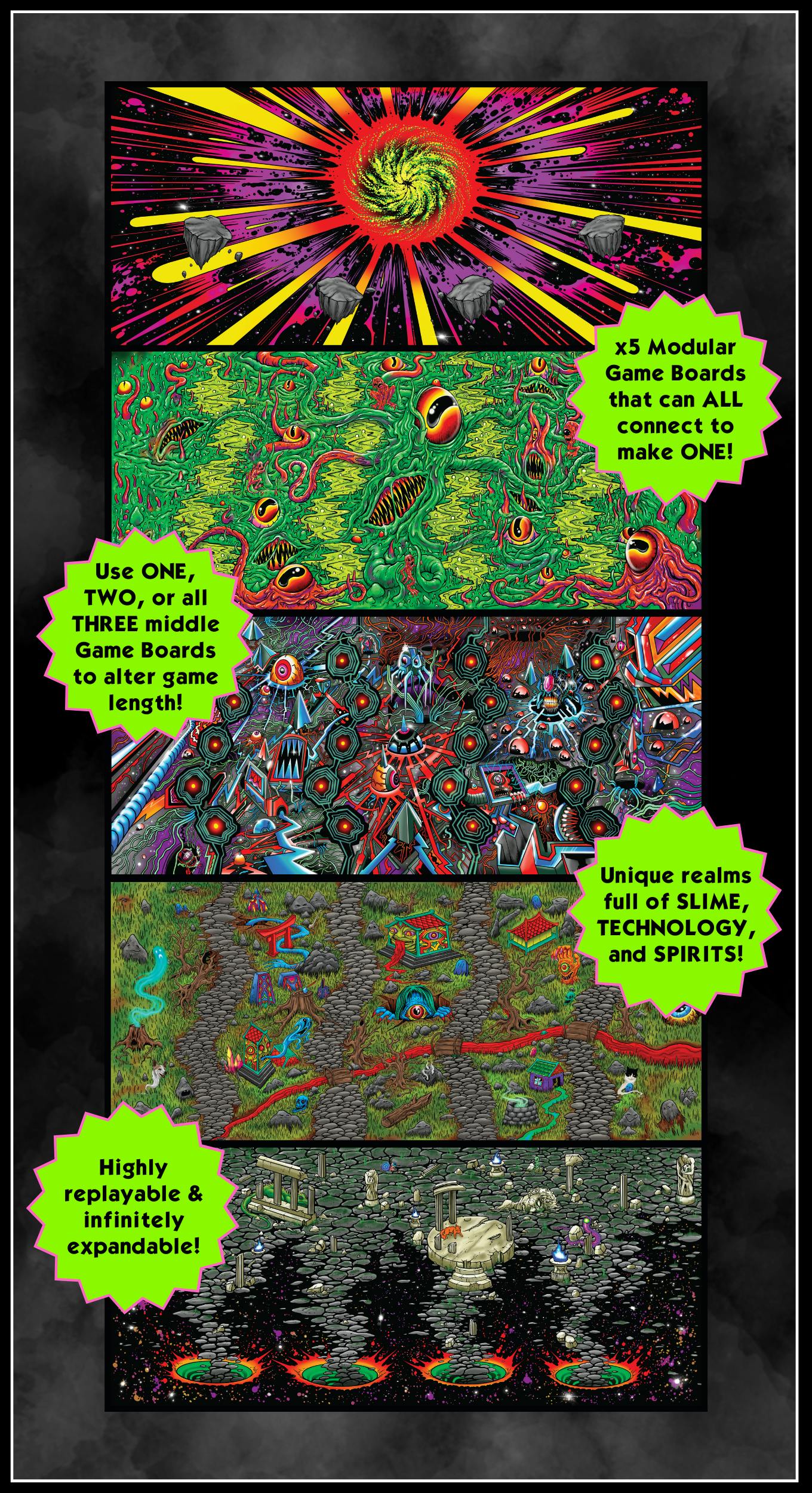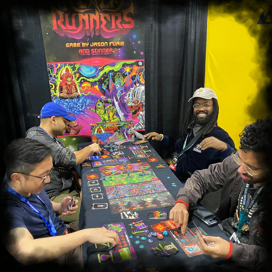 Old-school rules-lite board gaming for 2-4 players. An epic combination of loot collection, boss battles and battle royale showdowns featuring the art of Skinner π₯