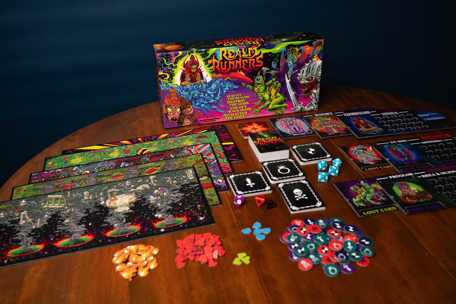 Old-school rules-lite board gaming for 2-4 players. An epic combination of loot collection, boss battles and battle royale showdowns featuring the art of Skinner 🔥