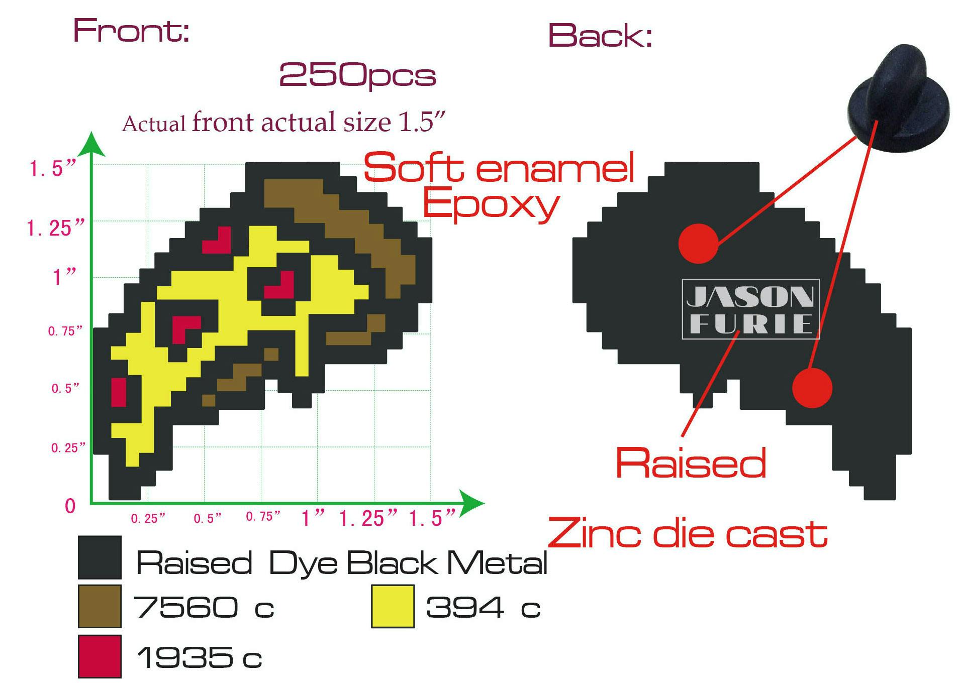 They are going to be slightly larger than pins I've designed in the past. To ensure they don't slide around on your jacket or backpack I've made all the 1.5" designs double clasped for extra support.