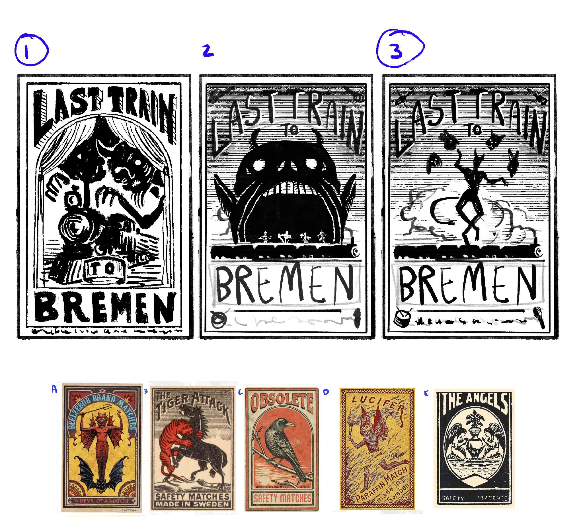 I had a very broad sense of the visual language I wanted for Bremen’s layout, but at first I had a pretty hard time putting it into words beyond “turn-of-the-century Americana, but a little bit punkish." I drew inspiration from numerous historical playbills and vaudeville posters – but Conner rightfully pointed out that we needed to combine that with the cluttered, utilitarian jumble of train tickets and manifests.
