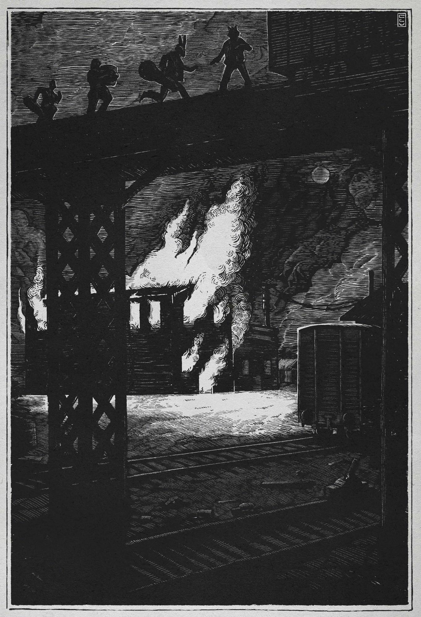 Wowee! Look at these! Absolutely stunning! The woodblock carving texture is truly out of this world. Conner voiced early on that they were eager to push themselves with the new illustrations, and judging from the final results, I would say that goal was an absolute rousing success.