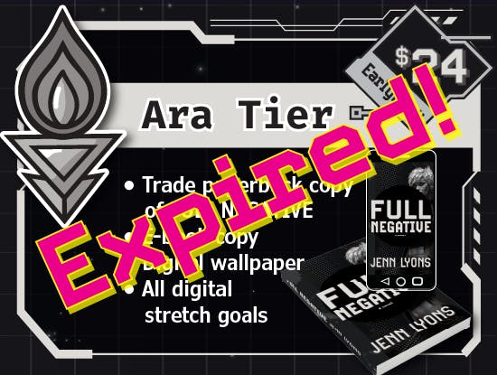 Available for the first 2 days only, industrious Aras can save some of their hard-earned credit. This pledge comes with a trade paperback copy of Full Negative, along with the ebook, digital wallpaper for your phone, and all digital stretch goals we unlock.