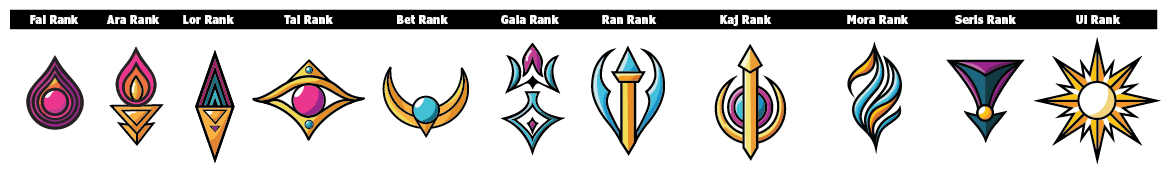 Throughout this page, you'll see banners like the two above. The one with the symbol on the left and the name of the category are 'in-world' sections, as your Reality Lenses would show them. The ones with just a line and the symbol on the right are 'real world' details.
