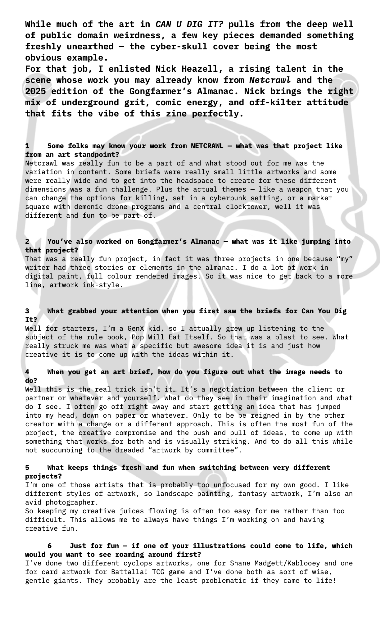 Project Update: WE DIG NICK HEAZELL AND HEAZEART