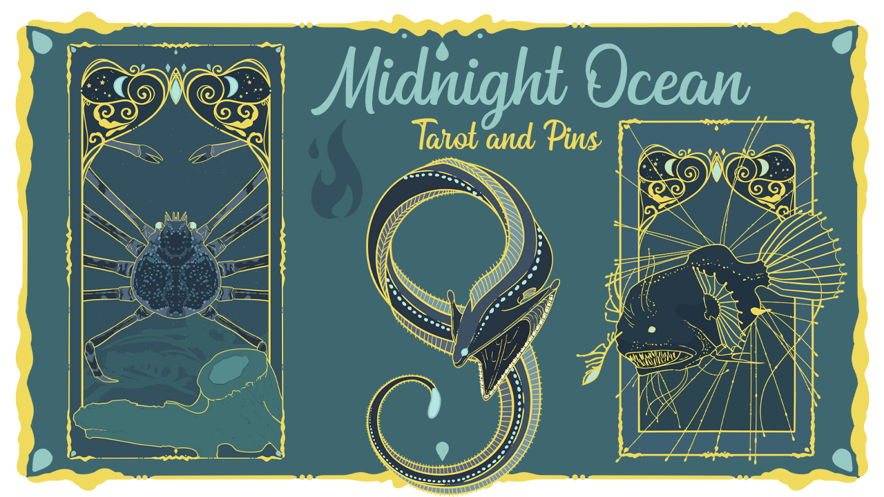 Hello! My name is Emma, and I'm an artist living in the sunny UK. This is our fifth crowdfunding campaign! This time I have for you a set of major arcana cards featuring creatures from the midnight ocean, a place so deep underwater that the light doesn't reach it.