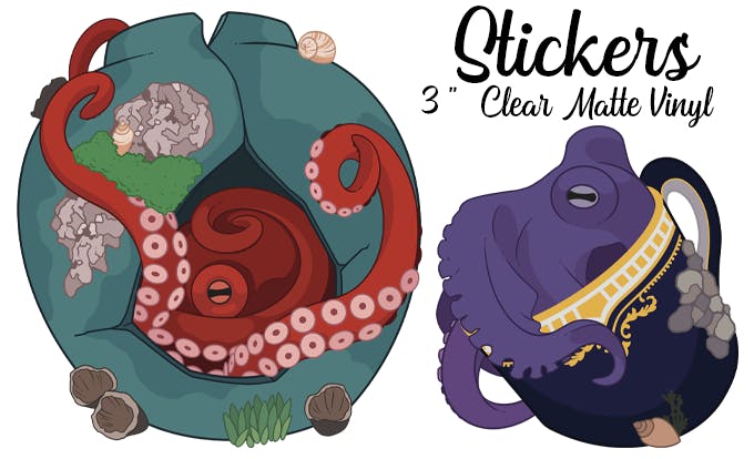 Hello! My name is Emma, and I'm an artist living in the sunny UK. This is our ninth crowdfunding campaign! This one is based on cephalopods, and things they sometimes live inside.