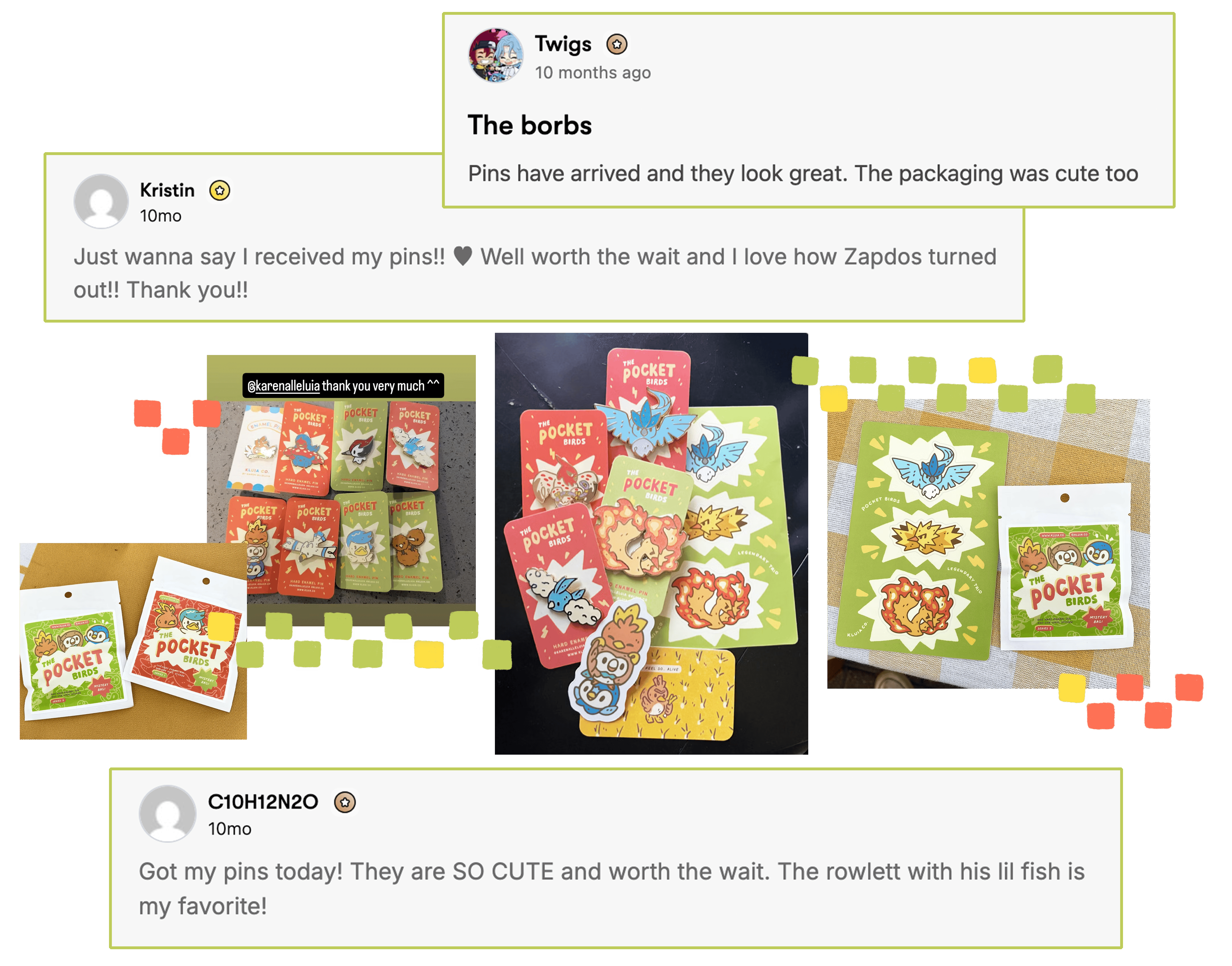 By pitching my ideas here, I'm able to get necessary funds from new + loyal fans all at once, making it possible to produce expensive products and order smart quantities in the most cost-effective way. If I'm lucky enough to meet my fiscal goals, I'll have steady inventory for events, my store, and other sales channels and therefore steady income~ Backing this campaign means a bit of waiting on your part, but it's currently the best way to run my art business and sustain my career! I am very grateful for any support I can get and I always make sure the backer experience is a good one. 🥳