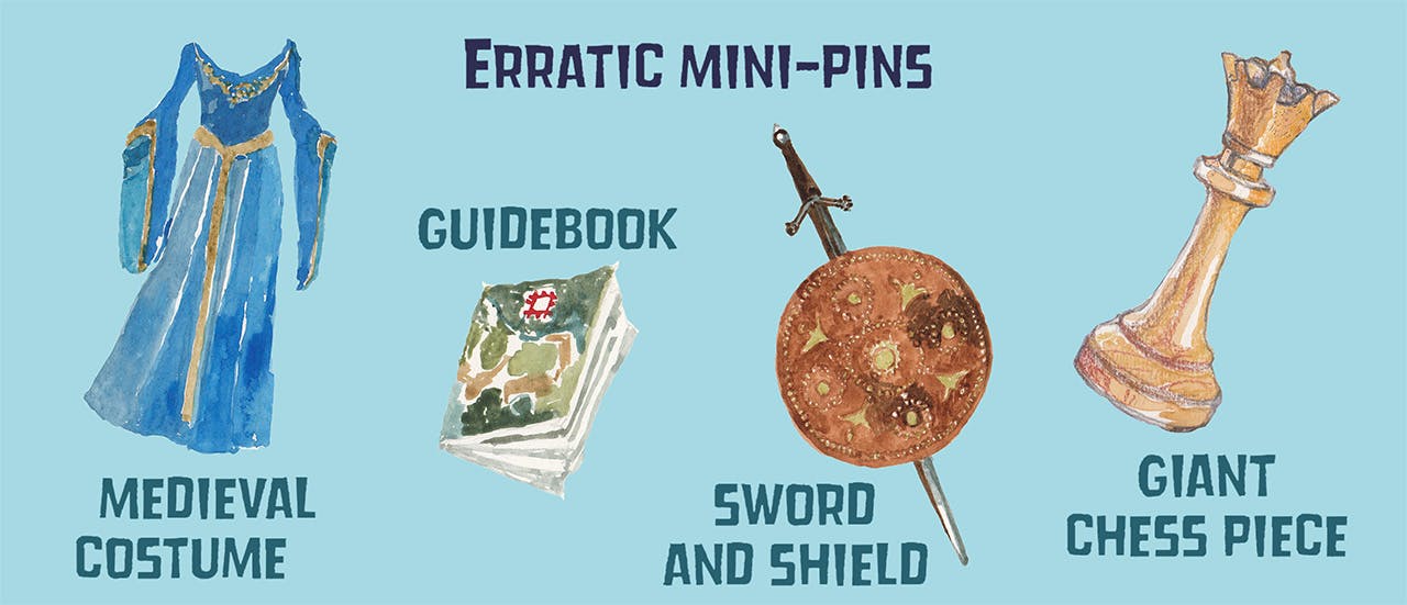 The campaign will launch on 22nd January with four Engulfed Castle Pin designs, four Erratic Mini-pin designs, and four Antibiotic Mini-pin designs 'conquered' (unlocked), with more designs to be conquered when the stretch goals are reached.
