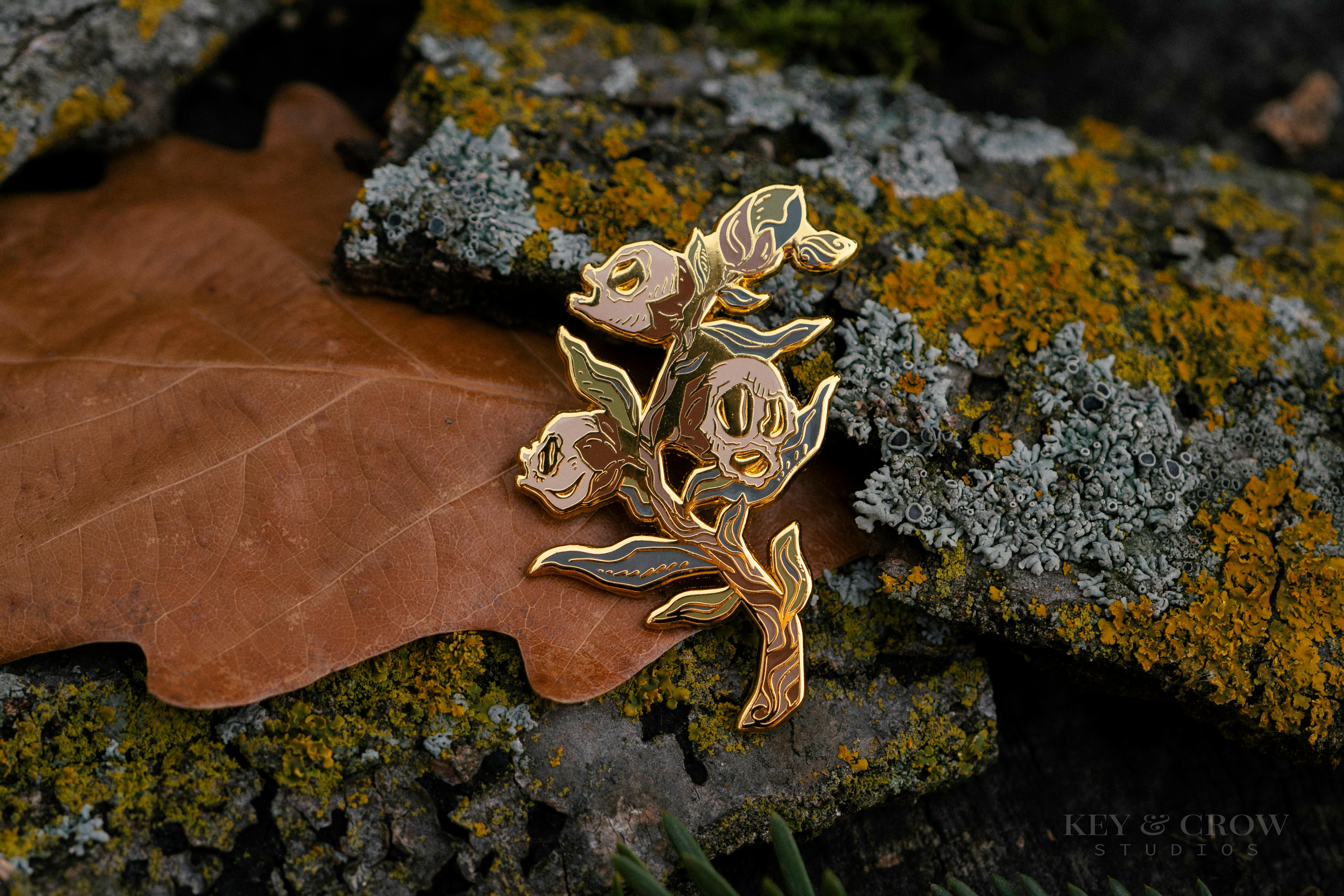 Late 2023 was a return to familiar spooks, with theTastefully Spooky Collection Restock Campaignβ Garden Ghost pins continue to be the star of the Key & Crow portfolio. This campaign also introduced the brand new Vampiric Visage pin, which is perhaps one of my favorite designs to date.