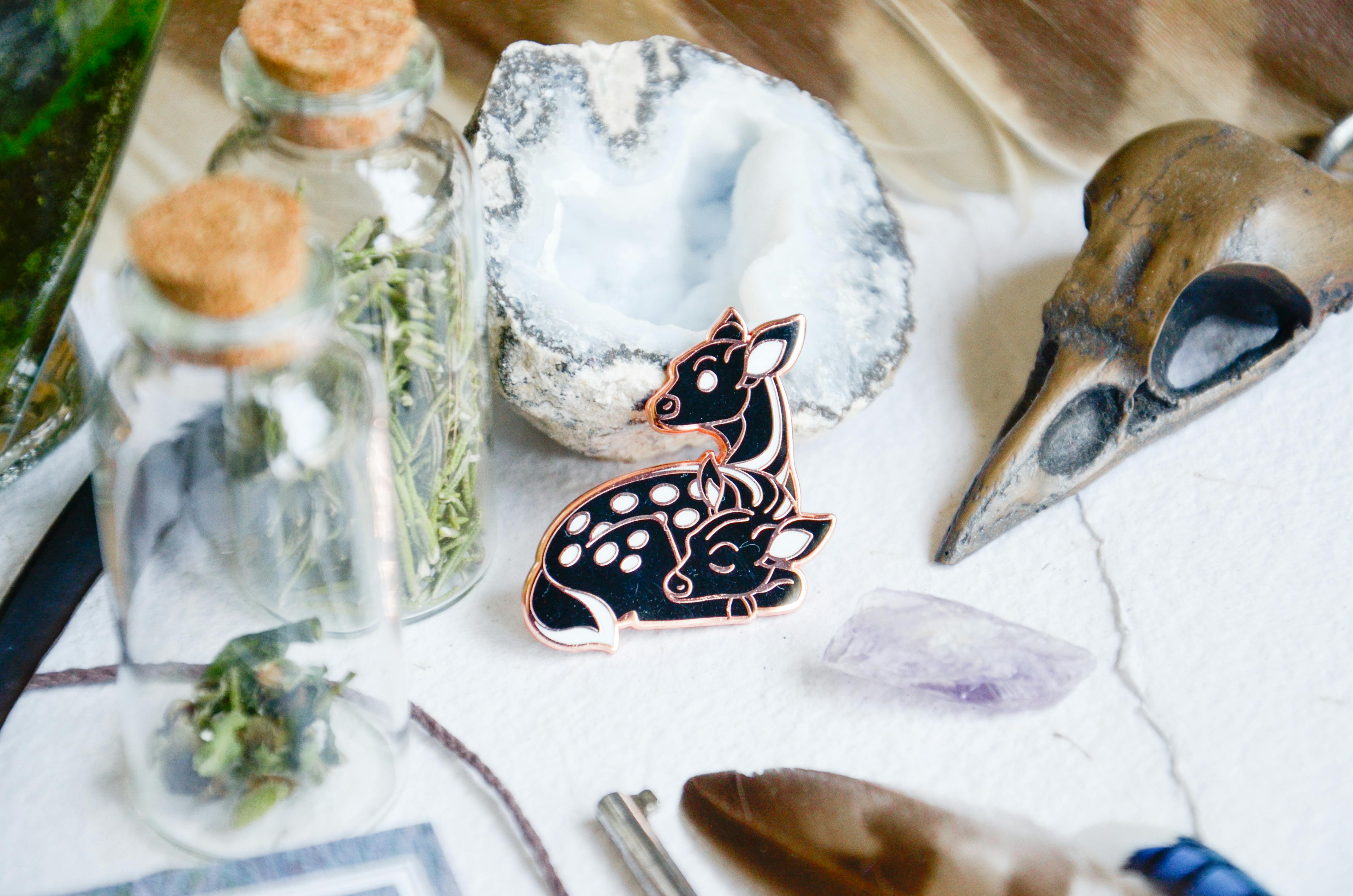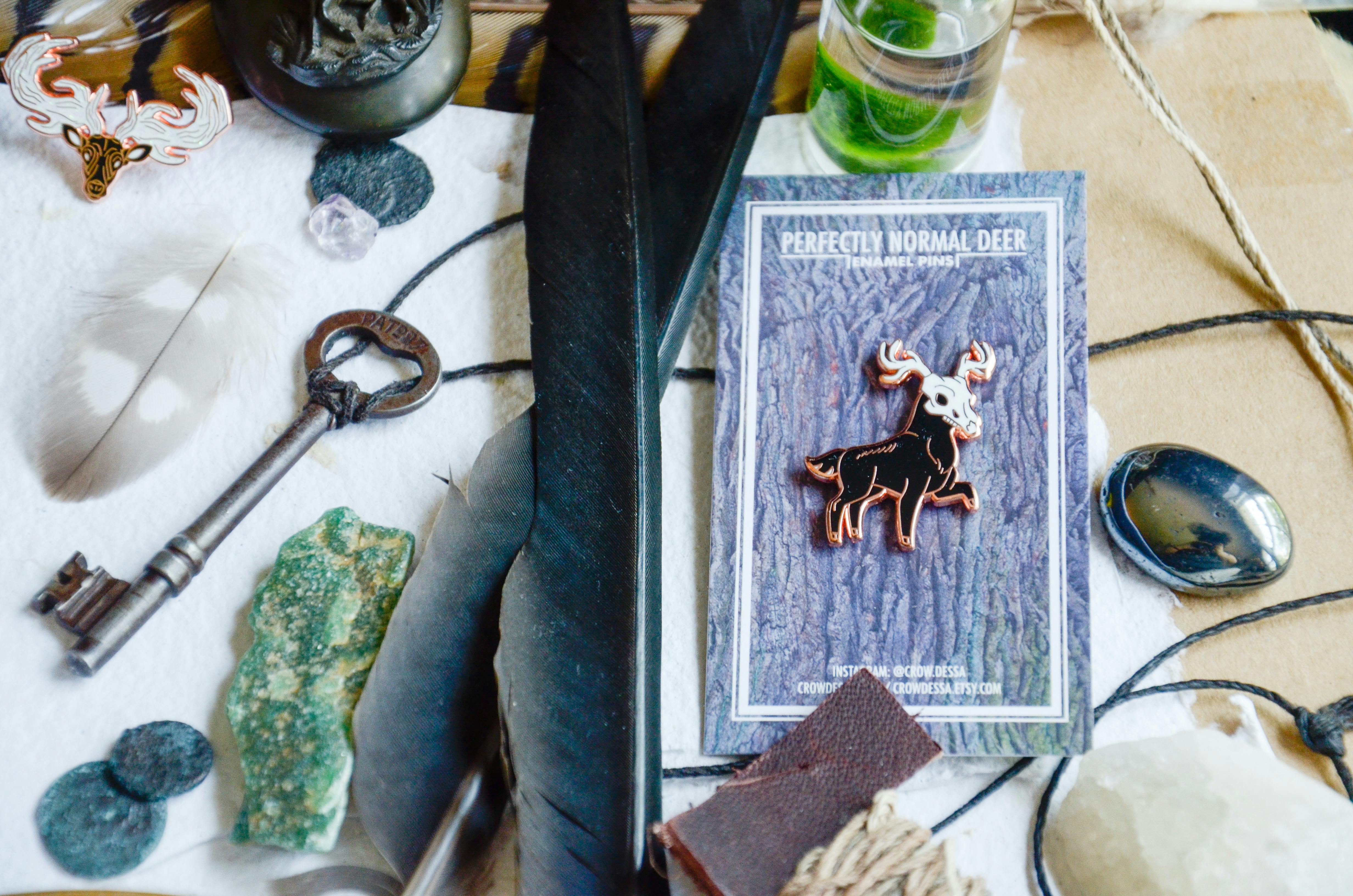 Perfectly Normal Deer was my first foray into making enamel pins in March of 2021; the project I cut my teeth on and smoothed out the wrinkles in my process. It included five hard enamel pins, a sticker, and an acrylic charm.