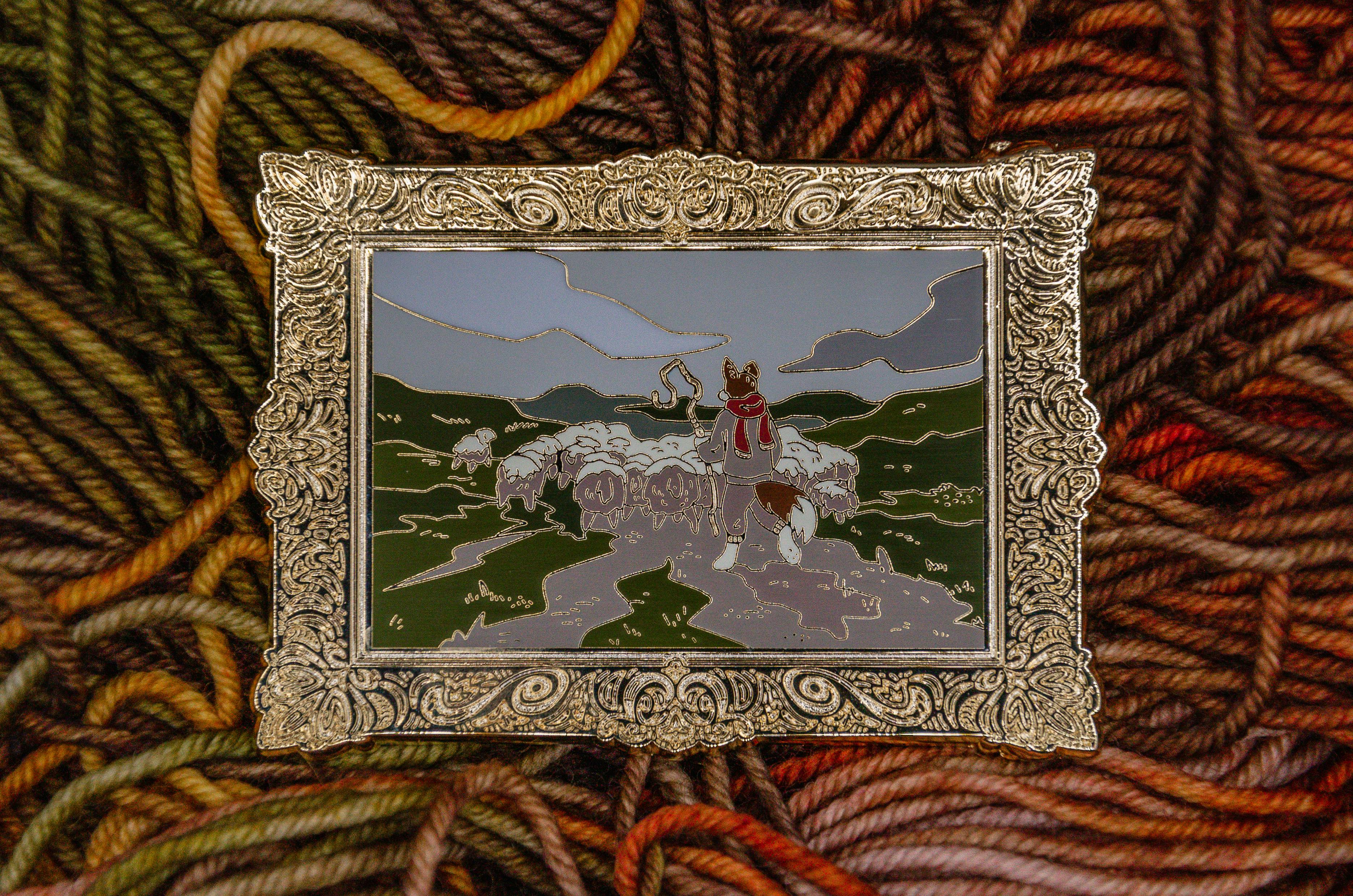 In March of 2022 I launched my third project, Flock, which was my chance to explore more product options and possibilities for the medium of the enamel pin, and I had an amazing time with it. Flock is a large, collectorβs sized hard enamel pin paying homage to the painting Iβve more than internalized in my time on this earth. Anton Mauveβs 1894 oil on board, Shepherd and Sheep, housed at the Cincinnati Art Museum has been an ever-present image in my life, a work that Iβm almost certain has influenced my personal sense of aesthetic and sensibilities as an artist. I consider Flock to be something of a love letter to my past self, nostalgia, magical overcast skies, and the feeling of exploring an all but deserted art museum for the first time as a child with wide eyes, discovering something that will make its home in your heart for years to come.