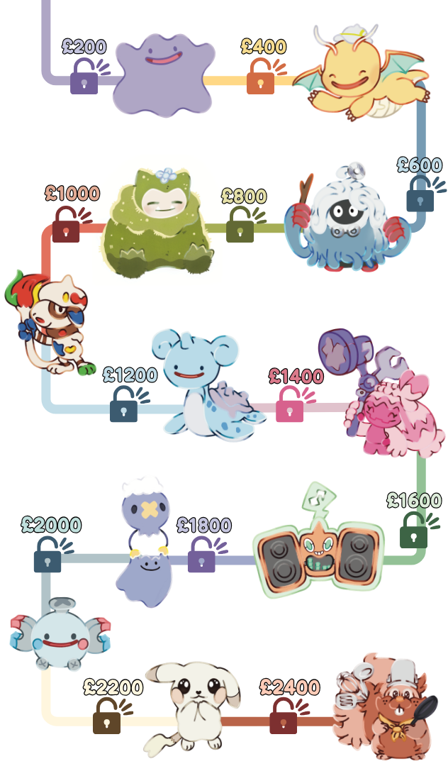 I do have a list of pokemon if I were to just do pokemon pins for this campaign ready to go. For those interested they are: bulbasaur, charmander, squirtle, oddish, slowpoke, cubone, tangela, magikarp, heracross, litwick, goomy, raichu, meowth, growlithe, farfetch'd, happiny, munchlax, mareep, wooper, torchic, piplup, zorua, cleffa, larvitar, lotad, chatot, riolu, rowlet, scorbunny, skwovet, vulpix, poliwhirl, dratini, cyndaquil, ralts, swablu, beldum, snivy, froakie, noibat, dreepy, sprigatito, eeveelutions, articuno, zapdos, moltres, mew