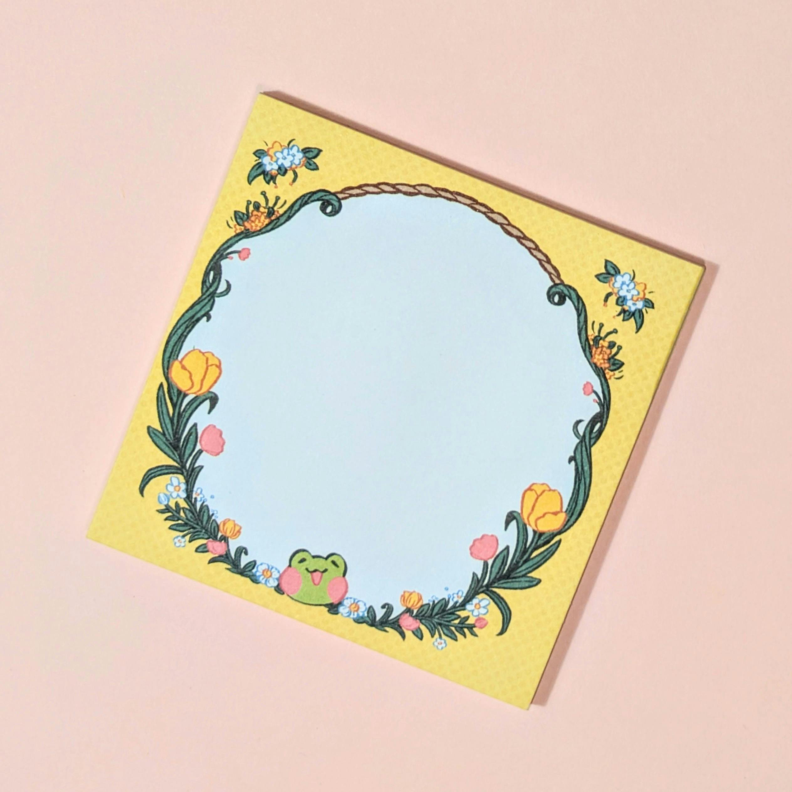 Rani The Froggie Floral Wreath Sticky Note. 50 pages per pad