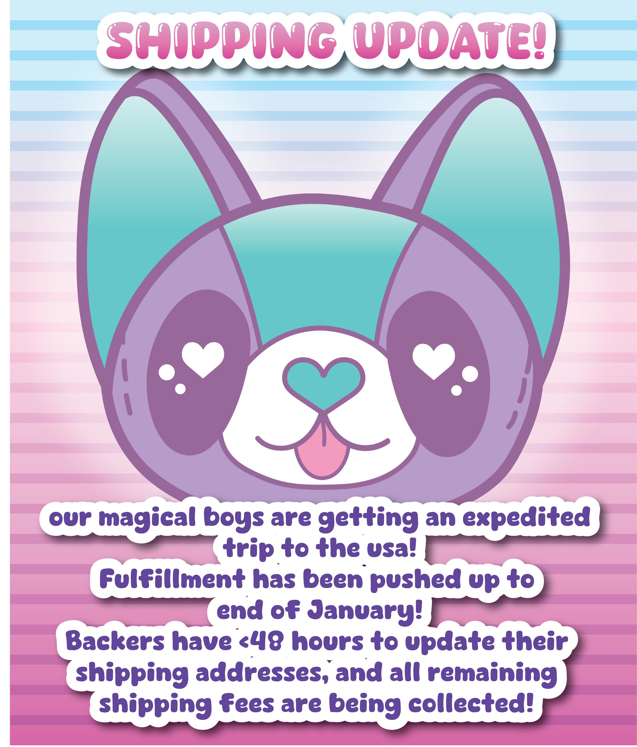 Here is where I am just head-desking right now. I have already begun processing shipping fees for USA backers, but as of last night I am making the momentary decision to pause further processing of shipping fees. Just until I have a more concrete plan pending Steven's update about the repair time needed. ✅For those who's payment methods have gone through so far, thank you. There is no need to do anything further. I have asked Steven to inquire with the team to see how much additional time will be needed to get Kandi and Batty repaired. I currently am only guesstimating on the eta, but I am remaining hopeful WORSE CASE SCENARIO the boys will be arriving to me in the same timeline as Frankly and Hoshi, which would mean around early March. Best case scenario, they go in for repairs and finish by the end of this month, and begin their voyage and arrive to me by mid February. I will do my best to make a 'update' over on Instagram and Discord once I get a more definitive answer, which might take a week or so..