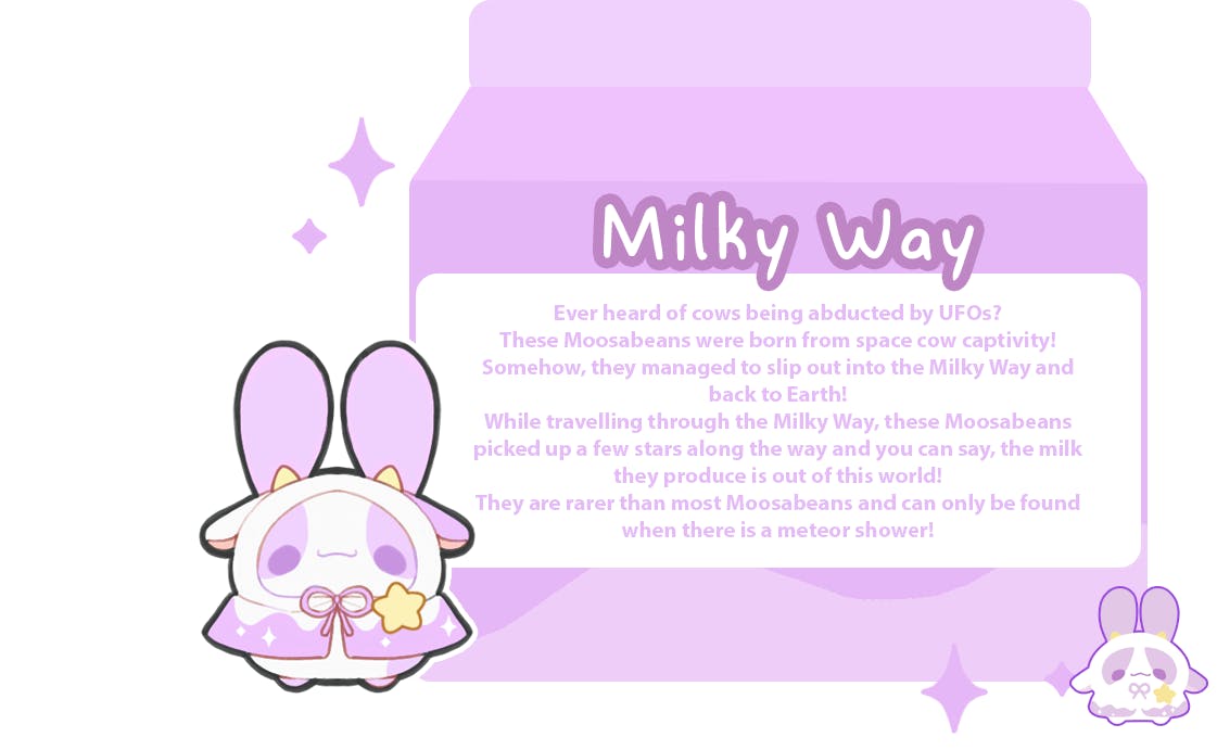 You can find them in various places of the world! They provide us with magical Moosabean Milk! We have no idea where it comes from...