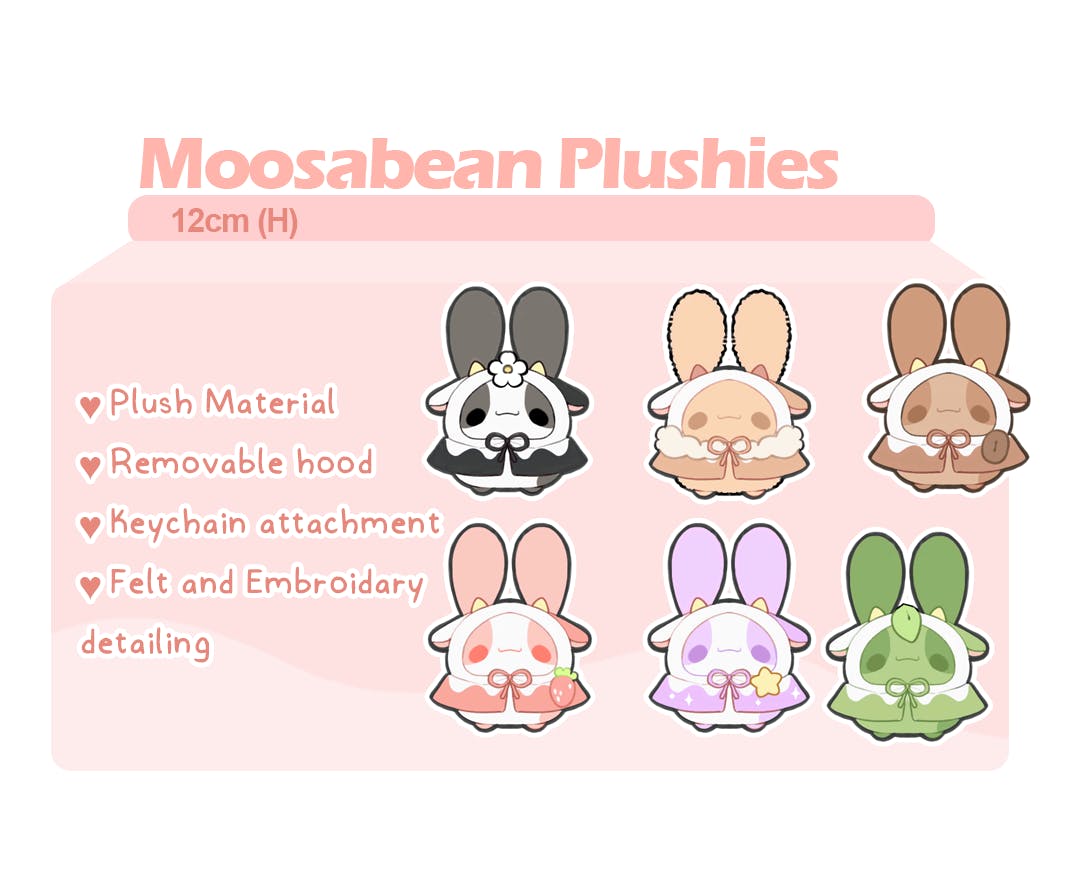 Who or What are Moosabeans? Moosabeans are little bunny-like beans in cow-like hoodies.