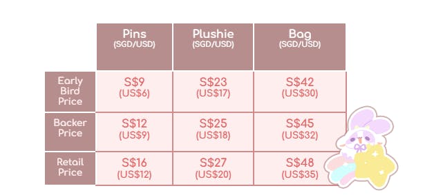 Only Full sets purchased of the Original pin and plush designs + Plush bag, Early Bird and regular tiers, will have further discounts!