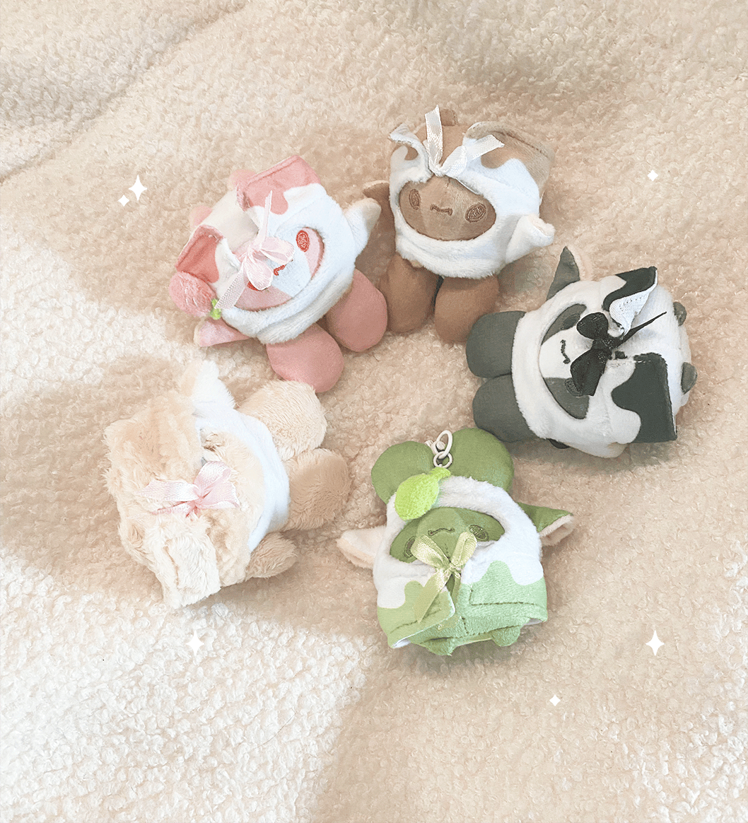 Finally hopping on the strawberry cow trend, I am so excited to share our little palm sized Moosabean friends, who are inspired from tasty milk flavored drinks and desserts! This will be my 6th crowdfunding project and I am really excited to finally bring these friends to life! And I'd love to kick the new year off with our fun little Moosabean collection! I especially enjoy their tiny little hoodies that can be taken out and swapped around with other plushies of similar sizes!