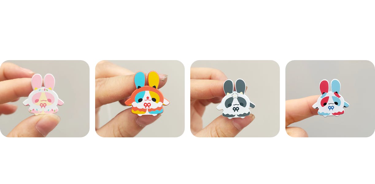 Currently all our plushies are on the way to us! :) Pins are still in progress... But here are some previews of completed pins! ♥