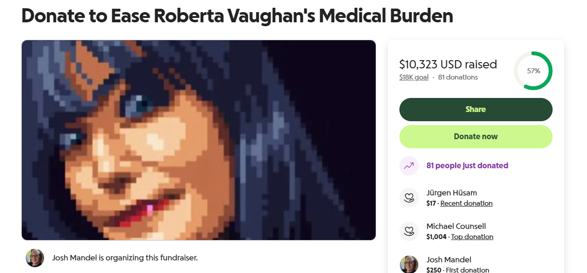 By now many of you have probably heard the news that Roberta Vaughan, a beloved member of the community and community manager / publicist within the adventure gaming scene, is facing a serious medicial crisis.